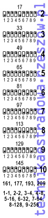 Mała ściągawka ustawień przełącznika DIP dla adresów DMX co 16 kanałów, czyli 1, 17, 33 itd. Przydatna w przypadku zastosowania