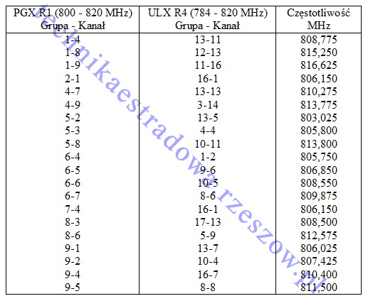 Opis w zakładce Artykuły, temat: Kompatybilność bezprzewodowych systemów Shure (i JTS) z różnych serii.