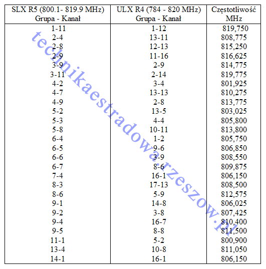 Opis w zakładce Artykuły, temat: Kompatybilność bezprzewodowych systemów Shure (i JTS) z różnych serii.